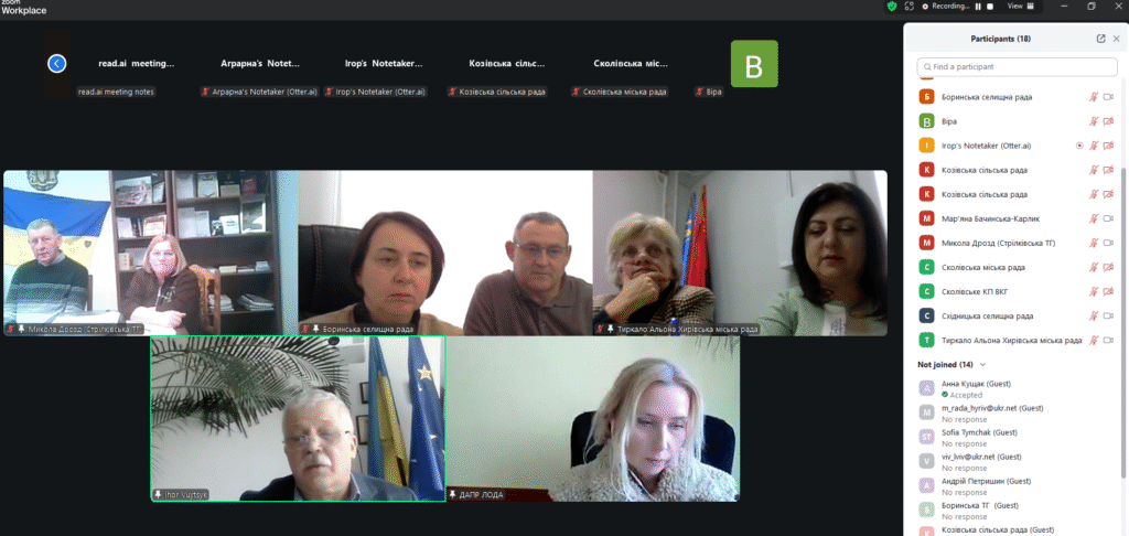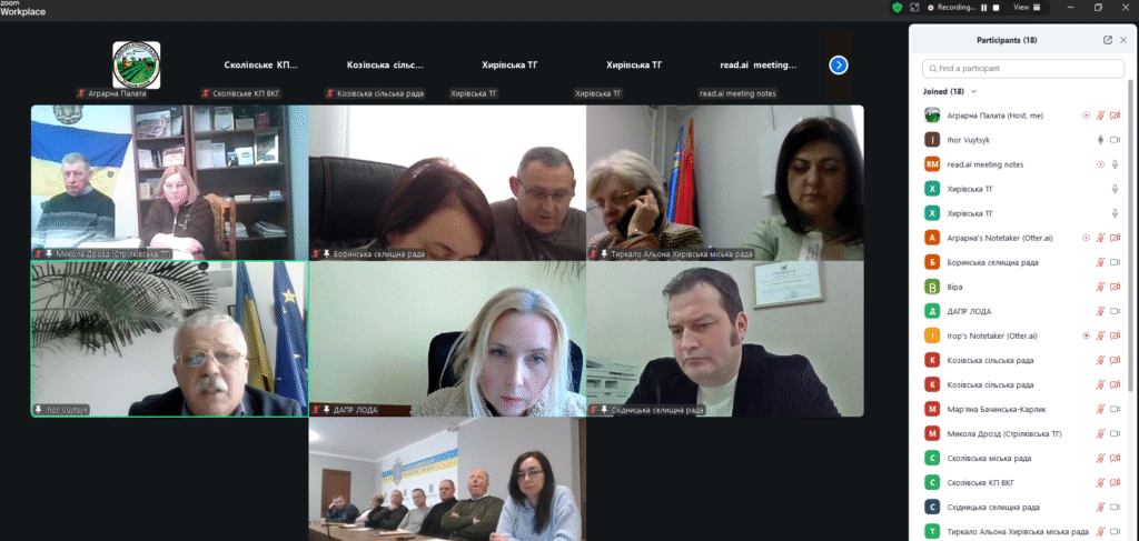 30 січня 2026 року в рамках реалізації проєкту «Захист біорізноманіття транскордонних територій України та Польщі від інвазійних популяцій борщівника (Heracleum)» відбулася онлай-нарада команди Головного партнера – Львівської Аграрної палати – з представниками цільових територіальних громад. Участь у нараді прийняли голови громад, представники фінансової та землевпорядної служб, керівники комунальних підприємств та старости.